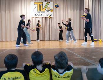 Stellvertretend für Enrico Schirmer, Vorstand-Sport, übernahm Rainer Schönhaar den Rückblick des Sportbetriebs. Der TV Häslach glänzt mit einem breiten Portfolio von Vielfalt. Rainer Schönhaar betonte: "Jeder findet irgendeinen Platz, um Sport zu machen". Durch die breite Palette an Sportangeboten ist die Zahl der Übungsleiter inzwischen auf insgesamt 45 angestiegen. Als kleines Dankeschön an alle Übungsleiter, die Woche für Woche für den TV aktiv sind, fand neben dem traditionell beliebten "Übungsleiter-Grillen" im September im März ein zentral organisierter Erste-Hilfe-Kurs statt, an dem insgesamt 18 Teilnehmer aus allen Abteilungen teilnahmen. Zusätzlich zu der internen Präsenz strebt der TV auch nach einer starken Außenwirkung mit seiner auffälligen gelben Vereinsfarbe. Aus diesem Grund wurde die bisherige Vereinskleidung durch die umfangreichere ERIMAProduktlinie SIX WINGS ersetzt. Interessierte können diese Kleidungsstücke über die TV-Homepage bei Bächi-Teamsport bestellen.